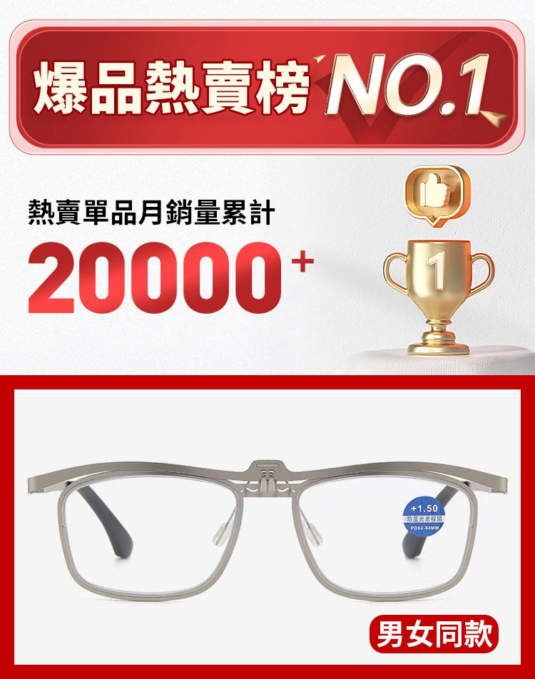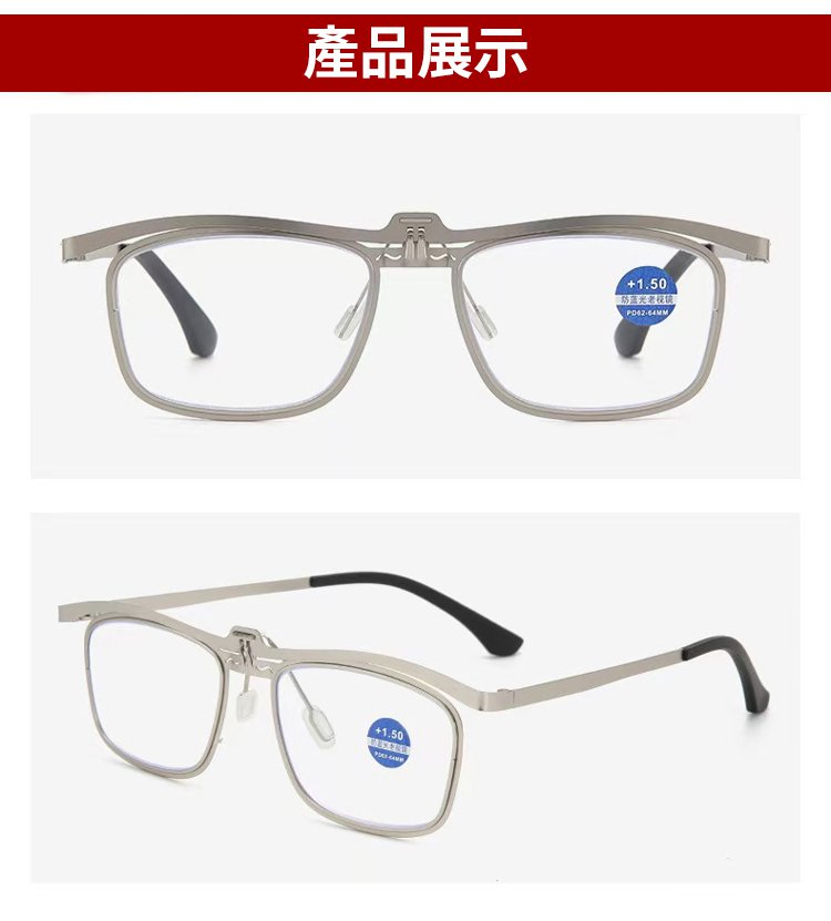 【遠近兩用】復古方框金屬翻蓋老花眼鏡
