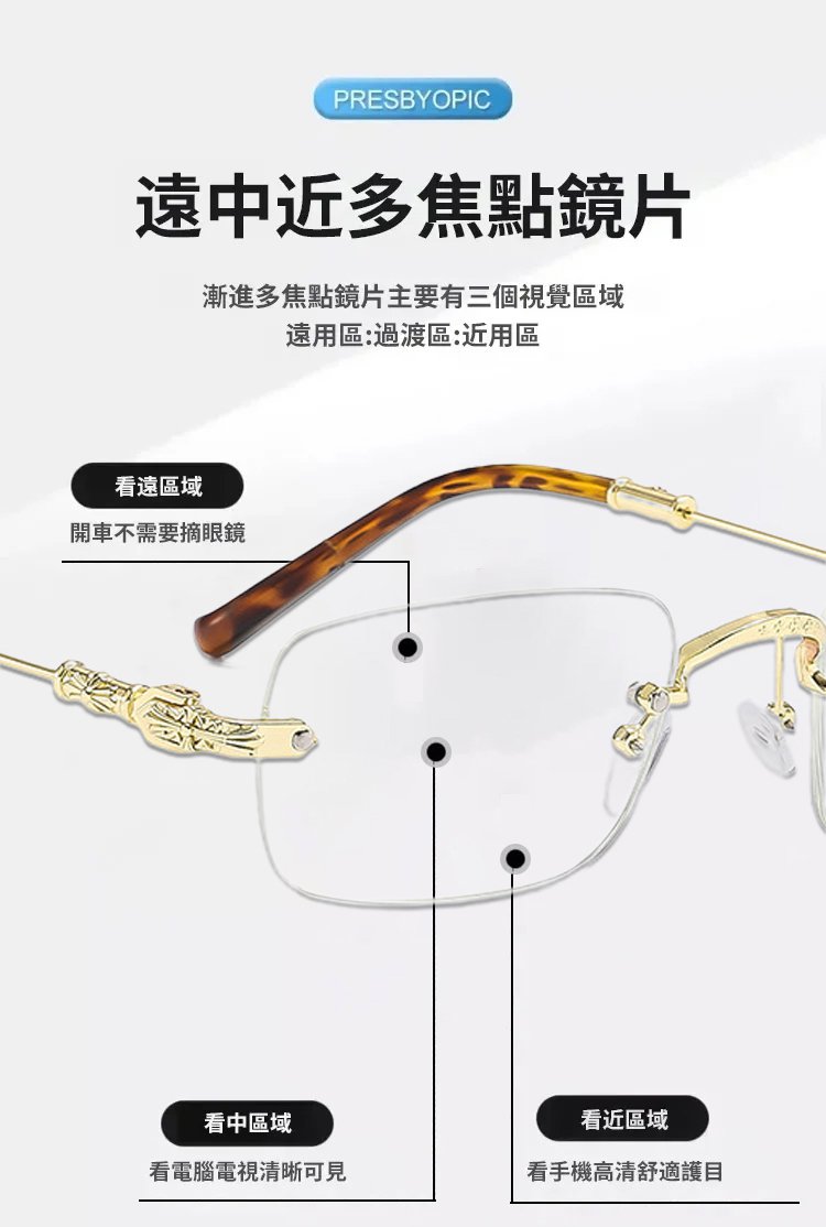 時尚鑽石切邊無框老花眼鏡
