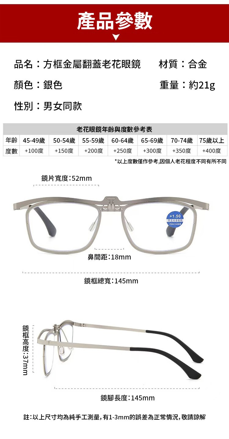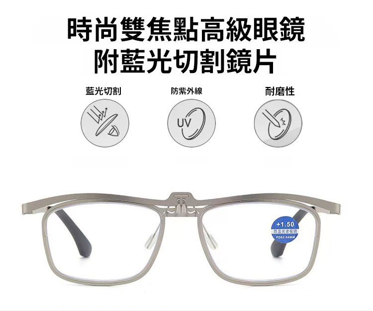 【遠近兩用】復古方框金屬翻蓋老花眼鏡